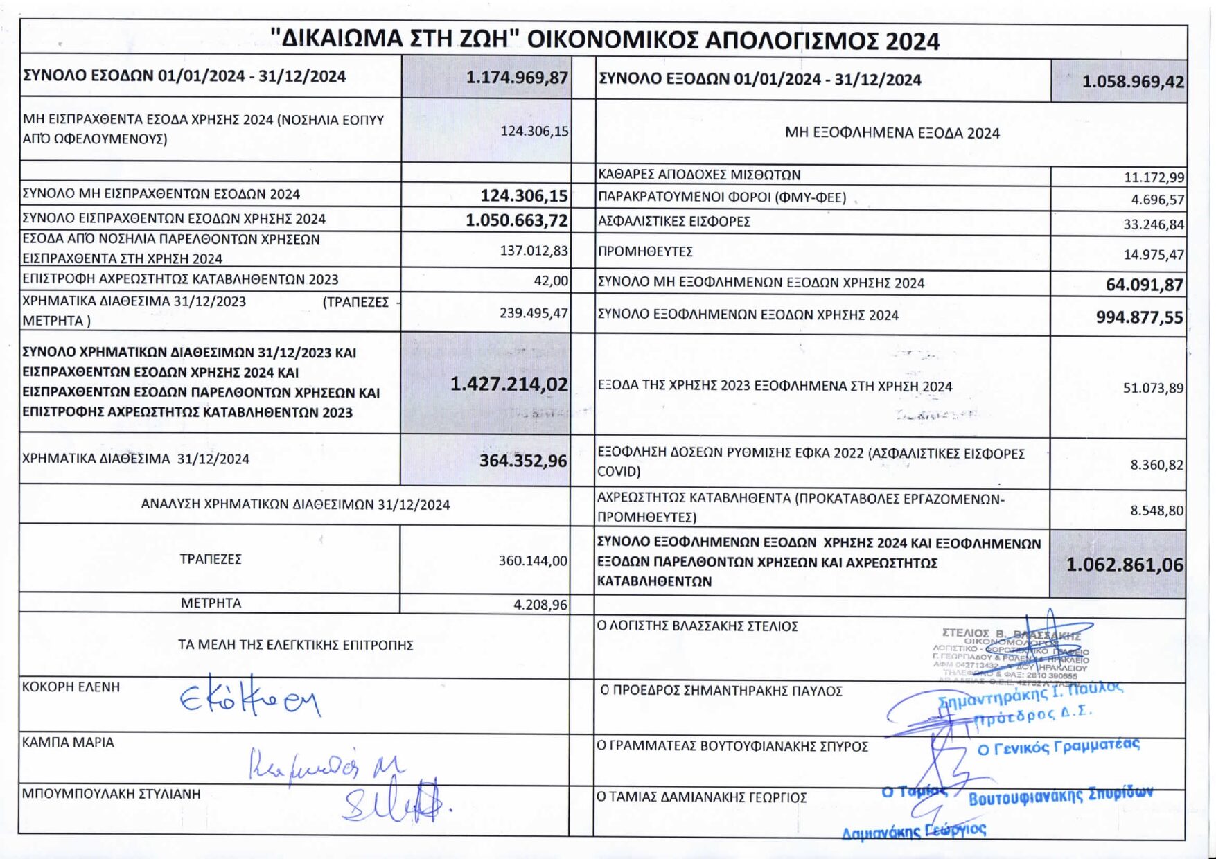 Στην ιστοσελίδα του Σωματείου είναι δημοσιευμένοι πάντα οι οικονομικοί απολογισμοί των τριών τελευταίων ετών.